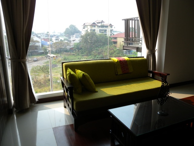 Brandnew hotel close to the southeastern corner of the moat, with great views on the mountains because it's quiet high and there are no high buildings near. Nice local area and just a walk away from all the entertainment of the moat and night bazar. The hotel offers 'serviced apartments' too, which are basically suites with a living room part and a bar with kitchenett area in some rooms.