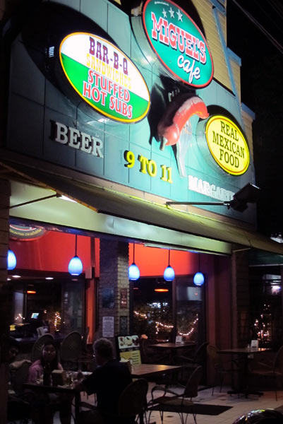 Miguel is a well established name for Mexican food and is easy to find on the moat. I see happy faces of customers and staff, this place seems to work, I think, so I sit down with my friend in what looks like a little fenced garden.