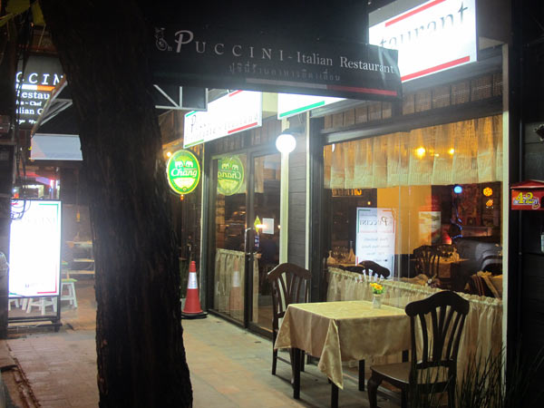 Puccini is one of many Italian restaurants in town, yet it serves some dishes you won't find anywhere else, at least not as good. My favourite "knock out" dish here is the Ravioli with wild mushrooms and truffle cream sauce". Truly yummie, what a great fragrance. The other pastas are quite good too, nearly al dente and rather home-made style. No artificial flavourings, even some organic options and whole wheat pasta, where else can you find that? The bill ends up a bit higher than average, because most pastas here are above 200 baht, but you'll leave satisfied. Started up by an Italian chef, but now run by an American owner, who made the wise choice not to change much. Don't rock the boat when the taste is good. Perfect for a romantic couple for a pleasant evening in a simple wooden house.