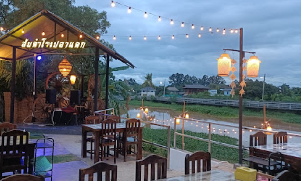 Somtam restaurant is next to the river. Good atmosphere. In the evening there is music playing. The shop has a good atmosphere.