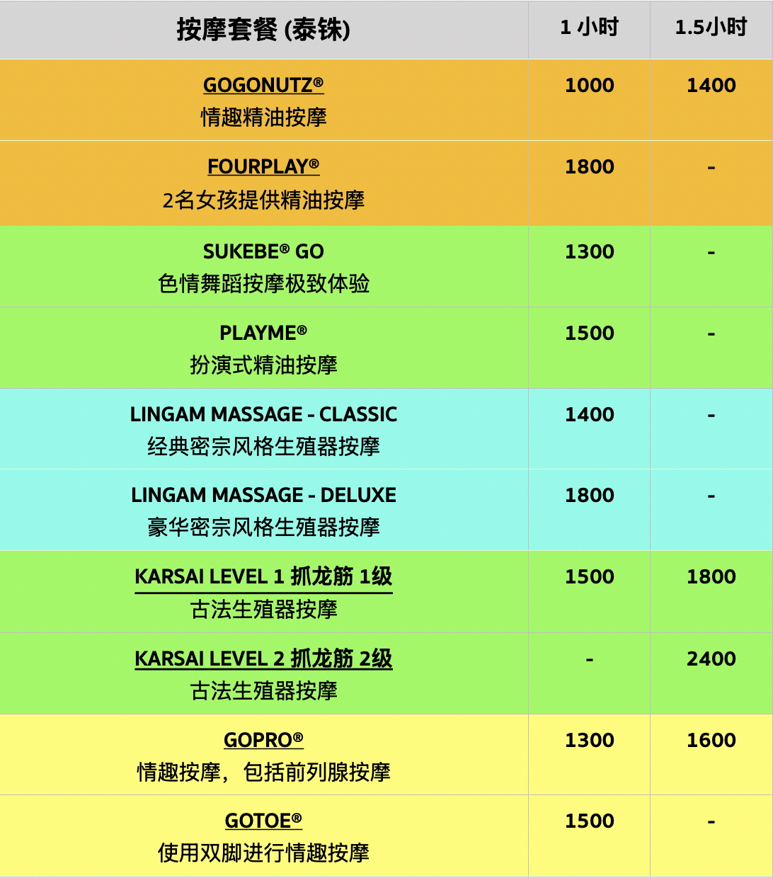 深夜顾客请注意:为了方便深夜有按摩需求的顾客,门店可以在23:00后激励部分员工加班,只需额外收取200泰铢的费用(给女孩,而不是门店)。因此,如果您希望在23:00之后接受按摩服务的话,价格将增加200泰铢。如果您的按摩在 23:00 之前开始并且还有工作人员可用,则价格是相同的。